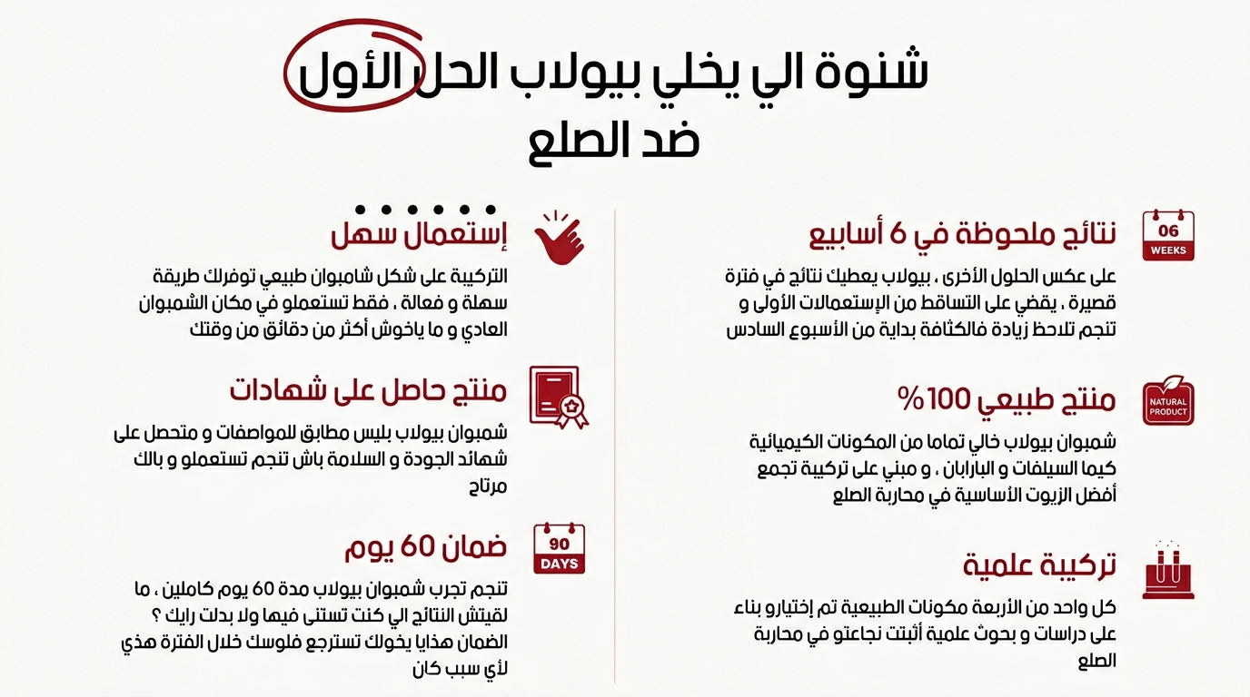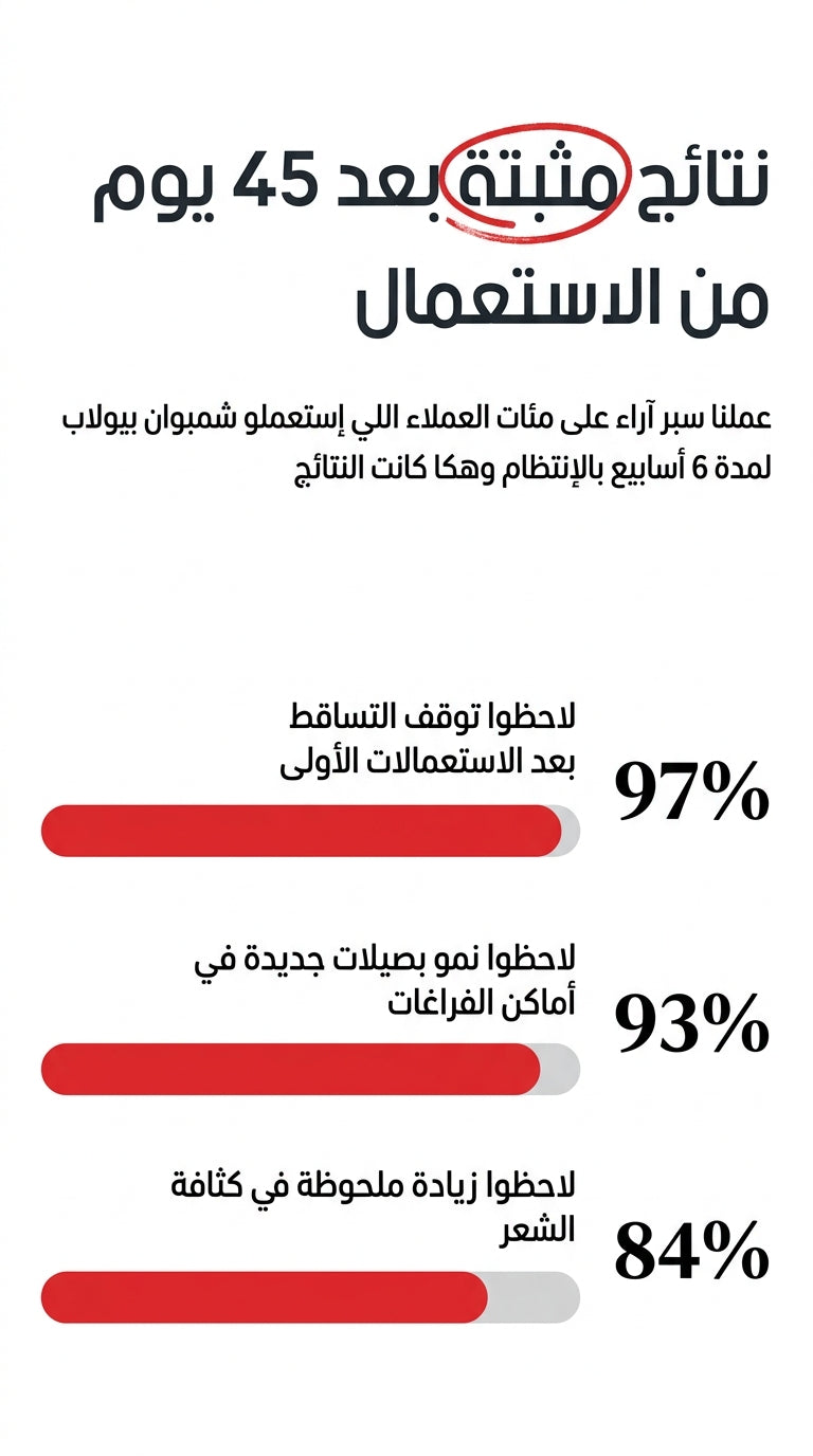 المنتوج كينقّص من تساقط الشعر وهاد الشي مؤكّد. ما تحتاجش تزيد فالكمية باش يعطي الرغوة، غير رشّة طبيعية وقوية كافية. فالأول ما عجباتنيش الريحة، ولكن من بعد ومع الاستعمال بان الفرق، وغادي نكمّل نستعملو.